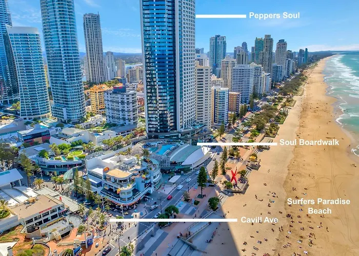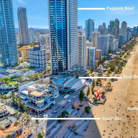 Le Centre de conventions et parc des expositions de Gold Coast est accessible en voiture en quelques minutes, tandis que le Marché Surfers Paradise Beachfront Markets se trouve juste à côté de la résidence spacieuse. En explorant Gold Coast, vous pourrez facilement rejoindre la Plage de Surfers Paradise, qui se trouve à seulement 6 minutes à pied.